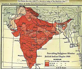 خلال الحقبة الإستعمارية، كان لمصطلح الهندوس دلالات لوصف أتباع الديانات الأصلية في الهند، وهي ديانات أخرى غير المسيحية والإسلام.[37] وفي الحقبة الإستعمارية المبكرة في العهد الإستعماري للقوانين الأنجلو-هندوسية ونظام محاكم الهند البريطانية، أشير إلى مصطلح الهندوس لوصف كل الناس من أتباع الديانات الهندية بالإضافة إلى ديانتين غير هنديتين: