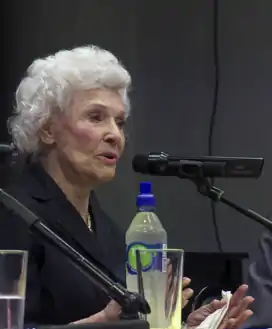 ![]() هنريتا بوجز تتحدث خلال لقاءٍ صحفيٍّ سنة 2014 | |