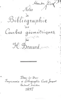 - "Pierre René Jean Baptiste Henri Brocard". مؤرشف من الأصل في 17 ديسمبر 2007. الوسيط