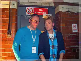 ![]() هنري هولاند وعلى يمينه المصمم جايلز ديكون | |