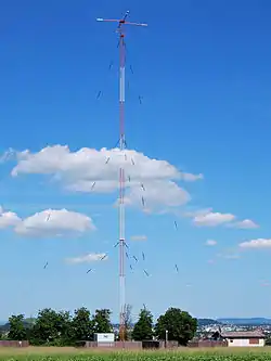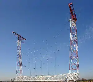 - طول الهوائي / طول الموجة = 1/4, Rr = 36,6 Ω ← كفاءة الهوائي: 36,6/(2 + 36,6) = 95 %