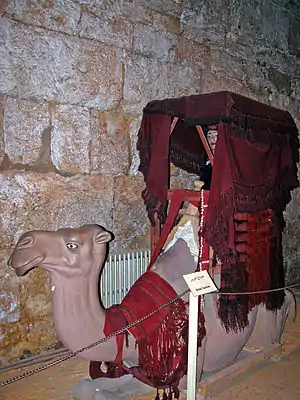 "الهودج":هو مَحْمَل يوضع على ظهر الحيوانات مثل الجمال والأفيال أشبه بحجرة صغيرة أو ما يصح القول عنها بالمركب فيه مقعد أو سرير مظلل عادة وقد يكون مغلقا بالكامل، استخدم في الماضي عادة لحمل الأثرياء أو استخدم أثناء الصيد أو الحرب، أو للنساء أثناء السفر، صُنع من الخشب وظلل بالقماش، وزيّن في كثير من الاحيان ليعكس مقام أو ثراء أصحابه، إستخدمه العرب على الإبل واستخدمه الهنود على الأفيال.[1][2]