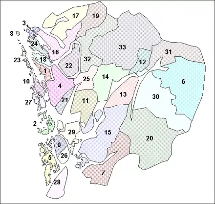 يوجد في مقاطعة هوردالان 33 بلدية وهي: