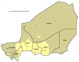 الهوسية (اللغة الأصلية)، العربية (سودانية، تشادية)، إنجليزية، الفرنسية (لغات بفعل الاحتكاك) |