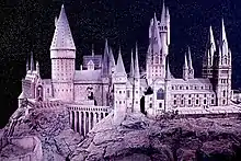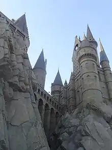 - هوغوورتس هي قلعة خيالية قديمة تقع في منطقة جبلية مرتفعات اسكتلندا[43] في شمال استكلندا [44]، المملكة المتحدة قرب بلدة سحرية خيالية هي هوغسميد.