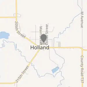 - "صفحة هولند (آيوا) في GeoNames ID". GeoNames ID. اطلع عليه بتاريخ 6 مارس 2021. الوسيط