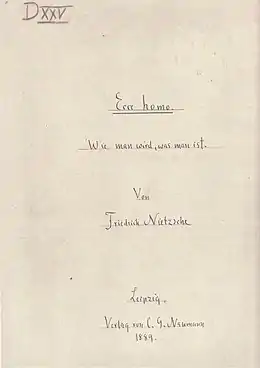هو ذا الإنسان Ecce Homo: Wie man wird, was man ist ![]() Cover of the 1908 Insel edition designed by هنري فان دي فيلدي.