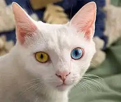 ويطلق على هتيروكروميا العين بتغايراللون القزحي . ويمكن أن تحدث بشكل كامل أو جزئي. وفي الحالة الأولى، تختلف لون القزحية عن لون القزحية الأخرى بشكل كامل . بينما الحالة الجزئية، يختلف لون جزء من القزحية الواحدة عن اللون المتبقي.