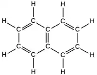 النفثالين (C10H8), يتكون من حلقتان متحدتين المستوى ويتشاركان في أحد الحواف. ولمزيد من الدقة فإن النفثالين ليس أحد الهيدروكربونات الأروماتية المتعددة الحلقات، ولكن يعتبر من الهيدروكربونات الأروماتية ذات الحلقتين. وللنفثالين رائحة مميزة، وهي معروفة لمن استخدم النفثالين في مقاومة العثة (نفثالين كور).