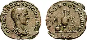 ولد كوينتوس هيرينيوس إيتروسكوس موسيوس ديكيوس في حوالي عام 227 م، لوالده ديكيوس، الجنرال الروماني الذي أصبح فيما بعد إمبراطورًا، وزوجته هيرينيا إتروسيلا. أصبح ديكيوس إمبراطورًا بعد إرساله لقيادة القوات في مقاطعتي بانونيا ومويسيا، حيث تم إعلانه إمبراطورًا من قبل قواته في سبتمبر 249، وفي مواجهة فيليب العربي. قاد قواته ضد فيليب، وتقابلت قواتهم في سبتمبر 249 ، بالقرب من فيرونا بإيطاليا. وفي المعركة، قُتل فيليب ، وبعد ذلك أعلن مجلس الشيوخ الروماني ديكيوس إمبراطورًا، وكرموه باسم ترايانوس، في إشارة إلى الإمبراطور تراجان.