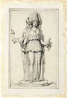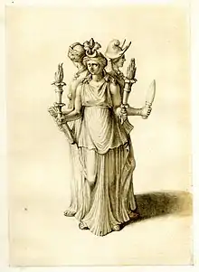 ![]() "هيكات شيارامونتي" ، تمثال روماني لهيكات ثلاثية الجسم ، على الطراز الهلنستي الأصلي ( متحف تشيارامونتي ، متاحف الفاتيكان) | |