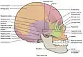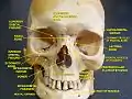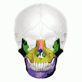 ![]() عظام الوجه الأربعة عشر من الجهة الأمامية للوجه. | |