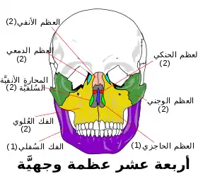 تتكون عظام الوجه في الجمجمة البشرية غالبا من 14عظمة هم:[1][2]