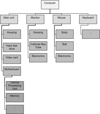 مثال لهيكل تقسيم المنتج على جهاز كمبيوتر (انظر إلى الصورة يمينًا):