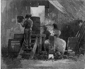 عندما استقر المهاجرون في تخوم ألاباتشيا في بدايات القرن الثامن عشر، كانوا قد جلبوا معهم وصفات قديمة لصناعة وتقطير الويسكي من شمال أيرلندا واسكتلندا، وأصبحت الموونشاين، (بالإنجليزية: Moonshine) وهو مصطلح يستخدم للدلالة على المكان الذي يتم فيه تصنيع الكحول بطرق غير قانونية، جزءاً لايتجزأ من حياة قاطني الجبال الجنوبية.[6] وبينما انتشر أولئك المستوطنون جنوباً خلال البرية، كان من بين المقتنيات القليلة التي لازمتهم في رحلتهم المحفوفة بالصعاب معدات التقطير. كان أمام هؤلاء أحد خيارين، اما أن يزرعوا الحنطة التي تدخل في صناعة الويسكي ومن ثم يبيعونها في الأسواق أو أن يقوموا بالتقطير والتخزين في حاويات يسهل نقلها ومن ثم يجنون أرباحاً أكبر.[7] بالنسبة للحكومة الأمريكية الوليدة فقد كانت تجارة الموونشاين تمثل عائداً مالياً محتملاً لها، ففي عام 1791 فرض أليكسندر هاملتون، وزير الخزنة، ضريبة شاملة على إنتاج الويسكي لتخفيف ديون الحرب الثورية.