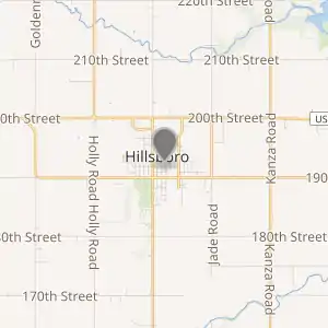 - "صفحة هيلزبورو (كانساس) في GeoNames ID". GeoNames ID. اطلع عليه بتاريخ 6 مارس 2021. الوسيط