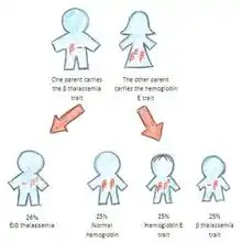 الاشخاص الذين لديهم الهيموجلوبين E/بيتا-ثلاسيميا هو بسبب وراثة جين الهيموغلوبين E من أحد الوالدين وجين بيتا الثلاسيميا من الاخر. الهيموجلوبين E/بيتا-الثلاسيميا هو مرض حاد، وإلى الان لا يوجد لديه علاج شامل. لأنه يؤثرعلى أكثر من مليون شخص في العالم.[5] عواقب الهيموجلوبين E/بيتا-ثلاسيميا عندما لا تعالج يمكن أن تكوْن فشل القلب, تضخم الكبد, مشاكل في العظام، إلخ.