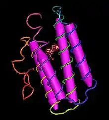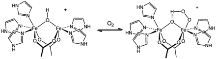 المركز الفعال في الهيميرثرين قبل وبعد الارتباط بالأكسجين (الأكسجة).