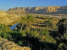 الواحة منطقة خصبة ذات نبات حي في الصحراء، حيث تكون المياه الجوفية على مسافة قريبة بشكلٍ كافٍ من السطح يتيح ظهور الينابيع.[1][2][3]