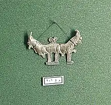 قلادة تصور زوجًا من الحيوانات المتشابكة ذات القرون الموجودة في واحة القطارة