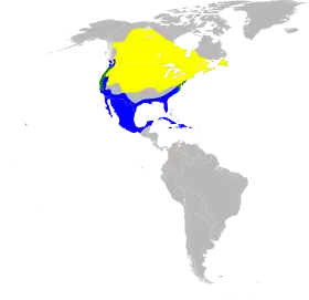 ![]() Range of B. lentiginosus Breeding range Year-round range Wintering range | |