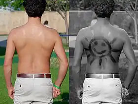 ![]() واقي الشمس موضوع على الظهر تحت أشعة الضوء العادي والأشعة فوق البنفسجية | |
