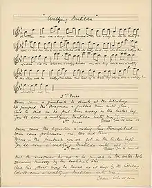 المخطوطة الأصلية من أغنية «والتزنج ماتيلدا»، كتبتها كريستينا ماكفرسون عام 1895.