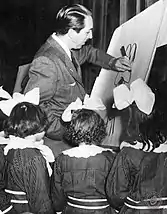 وُالتر إِلياس "وُالت" دِيزنِي (بالإنجليزية: Walter Elias "Walt" Disney)[6] كان رَجُل أَعمال، ومُنتج، ومُخرِج، وسِينارِستِ، واخْتِصاصيّ رُسُوم مُتحرِّكة أَمرِيكِيّ، وُلد في 5 دِيسِمبر 1901.[7] يُعد دِيزنِي الشّخصِيّة المِحورِيّة لِتارِيخ سِينما الرُّسُوم المُتحرِّكة لِلأَطفال، كما يُعتبر أَيقُونة ثقافِيّة فِي هذا المجال،[8] وذلِك بِفضلِ مُساهماتهِ الهامّة فِي صِناعة التّرفِيه خِلال مُعظّم القرن العِشرِين، والّتِي اِشتهرت بِشخصِيّات مِثل مِيكي ماوُس وبطوط. أَسِّس هُو وأَخوه رُوِيّ وليفر دِيزنِي شرِكة وُالت دِيزنِي[9] بِاِعتِبارِهِما قُطبِي رِيادة الأَعمال بهُولِيوُود، والّتِي تحوّلتِ فِيما بعد إِلى شرِكة الإِنتاجِ الأَكثر شُهرة فِي مَجال الرُّسُوم المُتحرِّكة، وتُعد بِالوقت الحاليّ الشّركة الأكبر فِي مجال وسَائِل الإعلامِ والتّرفِيه بِالعالِم، وتُقدر بِعائِدات سنوِيّة تصل إِلى عشرات المِليارات مِن الدُّولارات.[10]