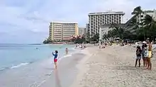 أصبحت المنطقة اليوم مليئة بالمنتجعات الكبير كفندق هيلتون هاوايان فيلاج وهاليكولاني وهيات ريجنسي وايكيكي وماريوت وايكيكي وشيراتون وايكيكي وفنادق تاريخية تعود لبدايات القرن العشرين (مثل موانا سيرفرايدر ورويال هاوايان). يستضيف الشاطئ العديد من الأحداث سنويا، بما في ذلك مسابقات ركوب الأمواج وعروض في الهواء الطلق ورقصات الهولا وسباقات قوارب الكانو.