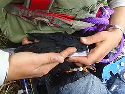 قياس وتر الجناح عند زمت أحمر المنقار خلال متابعة الطيور.