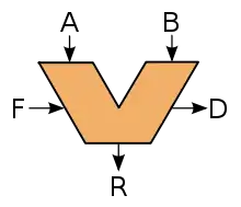 وفي الشكل المقابل فان A و B هما المعاملان، R هو الخرج، F هو الدخل من وحدة التحكم، D هي حالة الخرج.