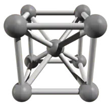(يحتوي المكعب على 8 زوايا، وتشغل كل زاوية ذرة واحدة. ولكن كل ذرة من هؤلاء تشترك في 8 مكعبات (خلايا) مجاورة، أي أن كل زاوية من ال 8 زوايا لوحدة الخلية تشترك ب 1/8 ذرة من ذرات الحديد، فيكون عدد الذرات الموجودة بوحدة الخلية التي تشغل الزوايا مساويا 1 ذرة. بالإضافة إلى 1 ذرة حديد في وسط الخلية، نحصل بذلك على ذرتين لكل وحدة خلية).