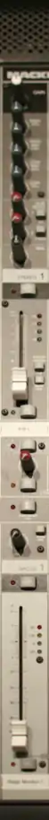 أول مفتاح Gain هو مفتاح التحكم بشدة مطال الإشارة الداخلة إلى المكسر من هذا المدخل، حيث يمكن من خلال هذا المفتاح زيادة أو انقاص إشارة هذا المدخل على حسب شدة هذه الإشارة الداخلة، المفاتيح الاربعة التي تلي مفتاح Gain هي مفاتيح اكولايزر التي تقوم بتعديل مطال الترددات في الإشارة الصوتية الداخلة، المفتاح الأول من الأعلى هو للترددات العالية، يليه مفتاحان يتحكمان بالترددات المتوسطة، ثم المفتاح الأخير للترددات المنخفضة، المفتاح المنزلق والذي يسمى Fader هو مفتاح التحكم النهائي بشدة الإشارة الخارجة من هذه القناة إلى المكسر، حيث سيتم مزجها مع الاشارات الاتية من القنوات الاخرى، هذا المفتاح المنزلق يعطي مهندس الصوت تحكم ناعم وسلس بشدة الإشارة الخارجة من القناة إلى المكسر، تقوم المفاتيح المنزلقة Faders بالتحكم بمطال كل إشارة من اشارات المداخل وحيث يقوم مهندس الصوت بموازنة كل الاشارات الداخلة على حسب البرنامج ونوع الاشارات الصوتية الداخلة، تتكرر هذه المفاتيح بنفس الطريقة في كل الشرائح المتبقية أي لكل الاقنية، بعد ذلك يتم مزج الاشارات كلها وتخرج من مخرجين رئيسيين يمين R ويسار L، والتحكم النهائي بمطال الإسارة الخارجة يتم بواسطة مفتاحين Master Faders.