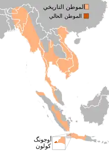 ![]() الموطن الحالي لِوحيد القرن الجاوي[6] | |