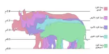 التصنيف التاريخيعرقي لِجنس الكركدنَّات الحقيقيَّة وفق نظريَّة وُضعت سنة 2006.[25] | |||||||||||||||||||||||||||