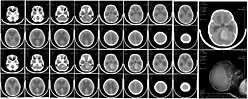![]() صورة بالأشعة المقطعية لطفلة تبلغ من العمر 6 سنوات مصابة بورم أرومي نخاعي، تظهر في الصورة كتلة ورمية في حفرة القحف الخلفية تزيد حدوث استسقاء الرأس. صورة بالأشعة المقطعية لطفلة تبلغ من العمر 6 سنوات مصابة بورم أرومي نخاعي، تظهر في الصورة كتلة ورمية في حفرة القحف الخلفية تزيد حدوث استسقاء الرأس. | |