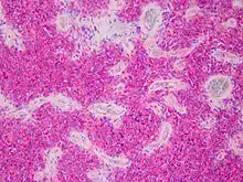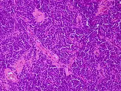 ![]() صورة مجهرية لورم الأديم العصبي الظاهر البدائي مصبوغة بالهيماتوكسيلين واليوزين. صورة مجهرية لورم الأديم العصبي الظاهر البدائي مصبوغة بالهيماتوكسيلين واليوزين. | |