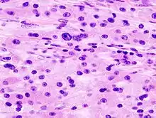 تظهر أورام الخلايا الحبيبية تشابهًا مع الأنسجة العصبية، كما يمكن أن يثبت ذلك من خلال الكيمياء المناعية والأدلة فائقة البنية باستخدام الميكروسكوب الإلكتروني.