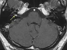 ![]() ورم العصب السمعي ثنائي الجانب في مريض يعاني من النوع الثاني من الورم العصبي الليفي ورم العصب السمعي ثنائي الجانب في مريض يعاني من النوع الثاني من الورم العصبي الليفي | |