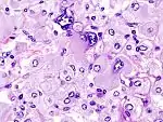 ![]() صورة مِجهرية عالية التكبير لورم القواتم بصبغة الهيماتوكسيلين والإيوسين صورة مِجهرية عالية التكبير لورم القواتم بصبغة الهيماتوكسيلين والإيوسين | |