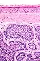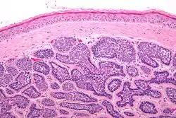 ![]() صورة مجهرية للورم الجلدي الأسطواني. صورة مجهرية للورم الجلدي الأسطواني. | |