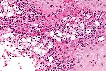![]() صورة بالحفر الضوءي لامرأة مصابة بالورم الصلب الأنفي. صورة بالحفر الضوءي لامرأة مصابة بالورم الصلب الأنفي. | |