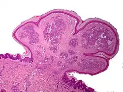 ![]() صورة نسيجية لورم حبيبي مقيح صورة نسيجية لورم حبيبي مقيح | |