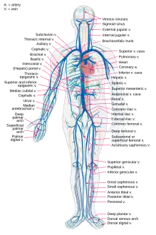 ![]() الأوردة الرئيسية في جسم الإنسان | |