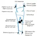 ![]() الجزء البطني للجذع الودي، مع الضفائر الزلاقية والخثلية. (الوريد الحرقفي الأصلي مسمى في أسفل اليمين) الجزء البطني للجذع الودي، مع الضفائر الزلاقية والخثلية. (الوريد الحرقفي الأصلي مسمى في أسفل اليمين) | |