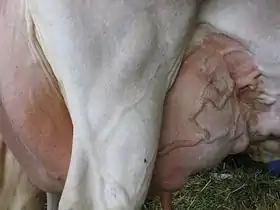 ![]() الأوردة السطحية من ضرع بقرة حلوب. | |