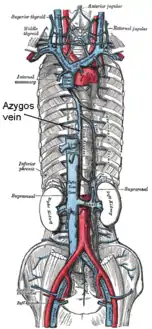 ![]() الوريد الأجوف العلوي، والوريد الأجوف السفلي، ووريد الفرد وروافده. (الوريد معنون في المنتصف باسم Azygos vein) | |