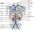 الوريد الأجوف ووريد الفرد، مع روافدهم.