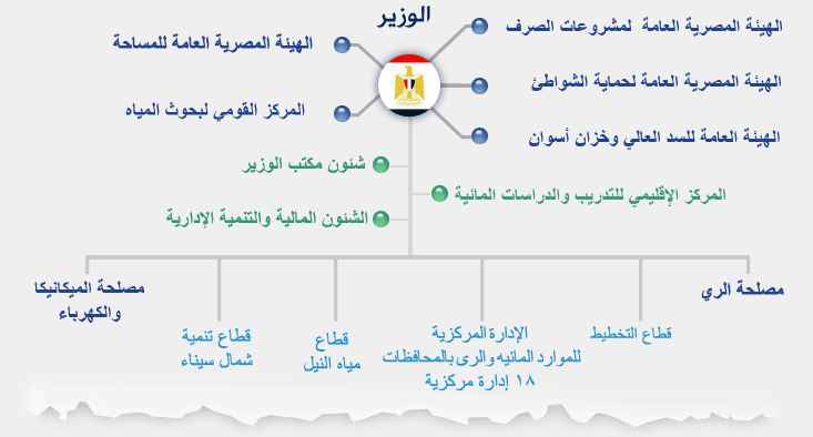 - الموقع الرسمي لوزارة الموارد المائية والري المصرية-الهيكل التنظيمي نسخة محفوظة 16 يناير 2013 على موقع واي باك مشين. [وصلة مكسورة]