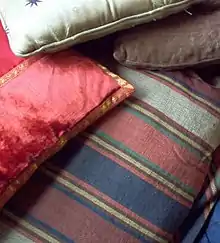 وسائد متركمة فوق بعضها، بأشكال مختلفة.